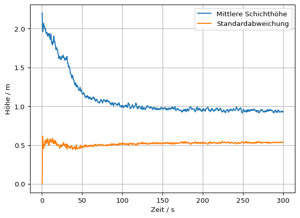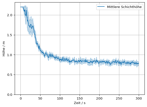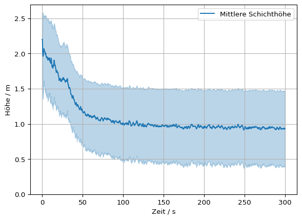 Die obige Methode kann auch über alle Zeitpunkte angewendet werden, um z. B. Mittelwert und Standardabweichung der Schichthöhe zu berechnen.