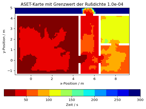 plt.title(f'ASET-Karte mit Grenzwert der Rußdichte {grenzwert_rußdichte:.1e}')