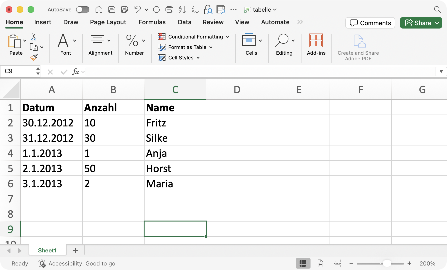 | sheet = “Name” | Tabellenblatt, das gelesen werden soll | Ja |