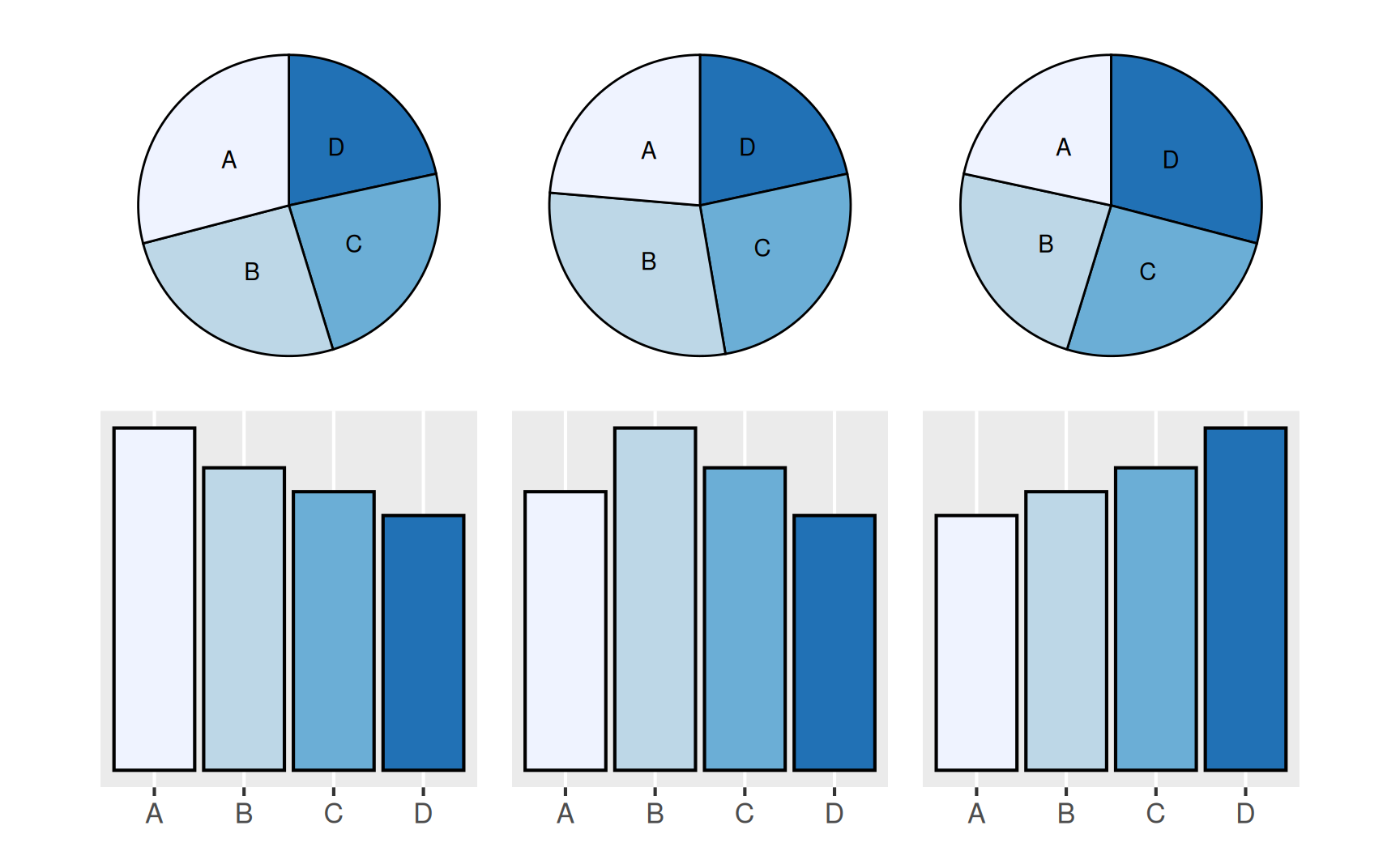 Obwohl Kreisdiagramme in der Praxis sehr häufig verwendet werden, sind sie nicht ganz unproblematisch. Das hat mehrere Gründe: