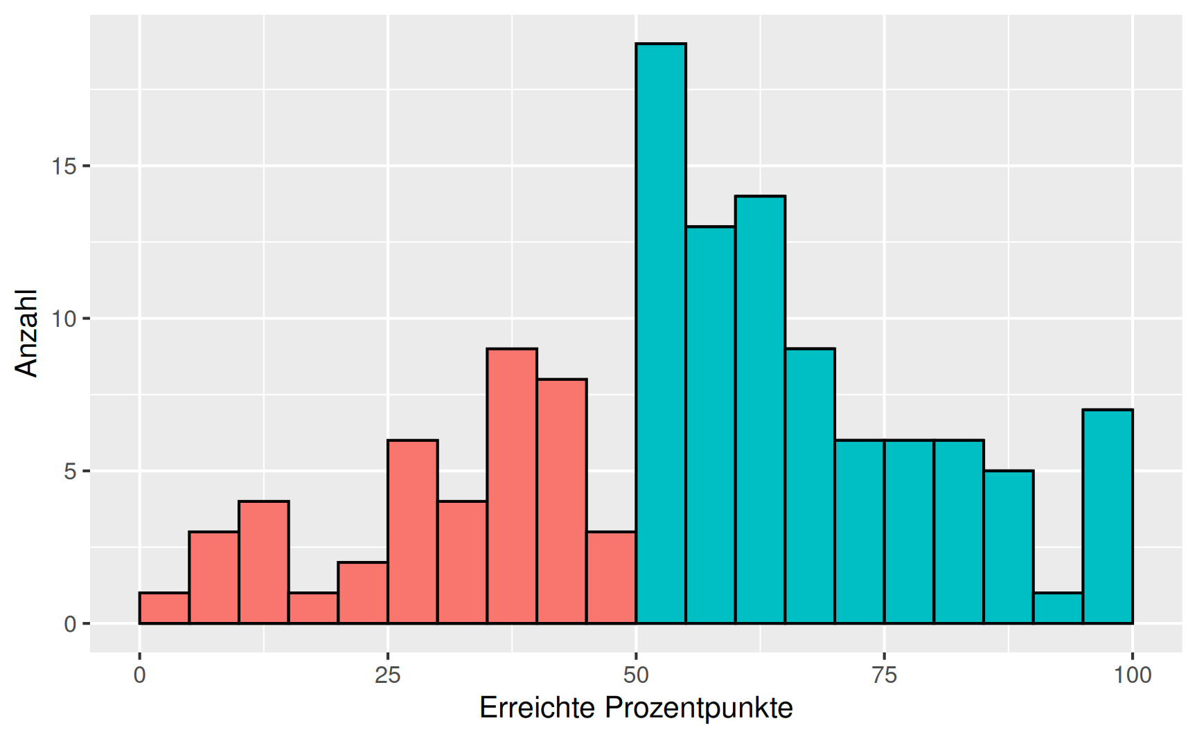 Die Notenverteilung ist jetzt am Histogramm deutlich abzulesen.