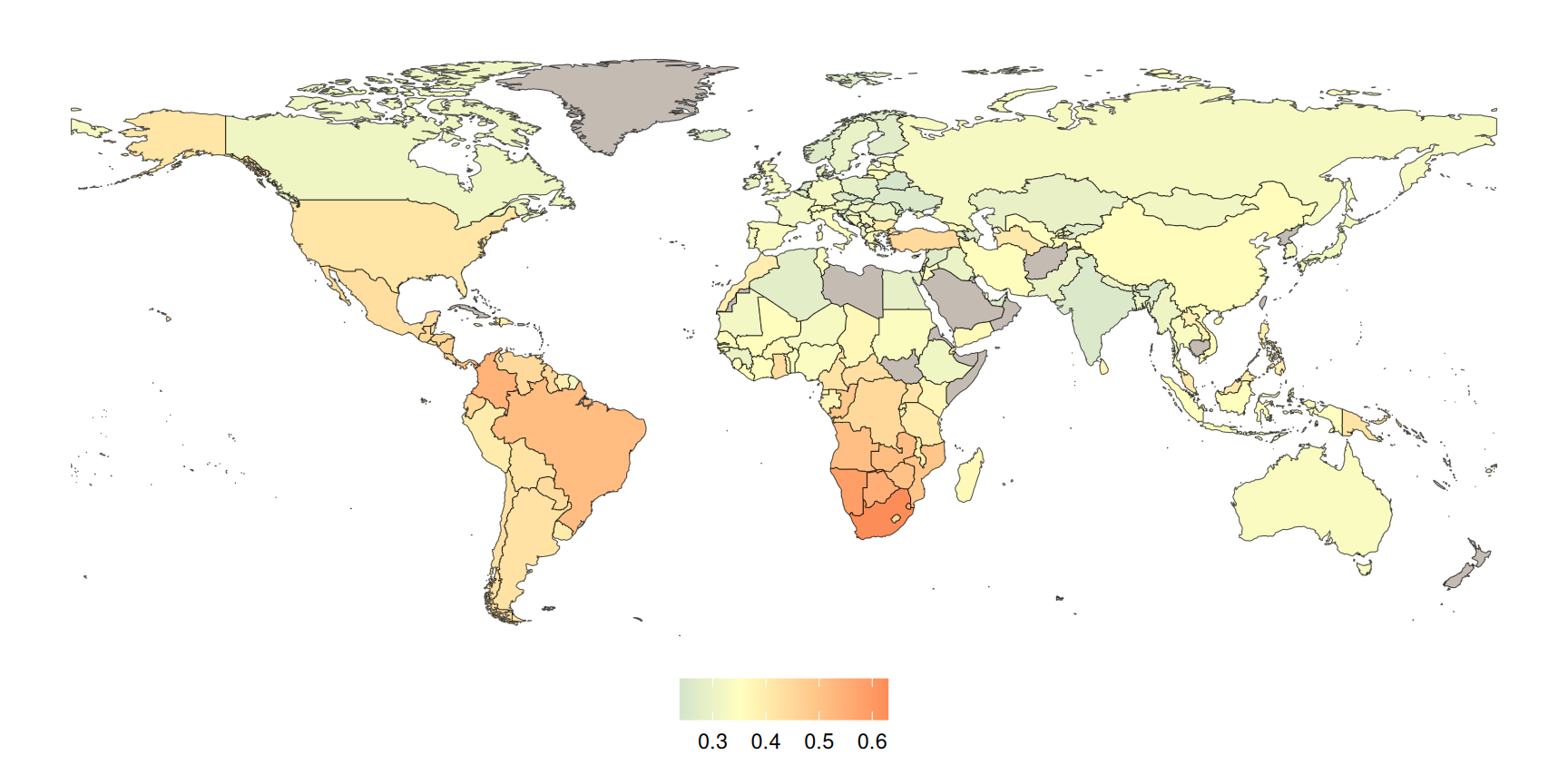 Das gebräuchlichste Konzentrationsmaß ist der Gini-Koeffizient, ein statistisches Maß, das vom italienischen Statistiker Corrado Gini (1884 – 1965) zur Darstellung der Ungleichverteilung von Einkommen in einer Volkswirtschaft entwickelt wurde. Zum Beispiel veröffentlicht die Weltbank Daten über die Verteilung des Wohlstandes in Ländern der Welt (siehe Abbildung 1). Der Gini-Koeffizient wird mithilfe der Lorenzkurve bestimmt.