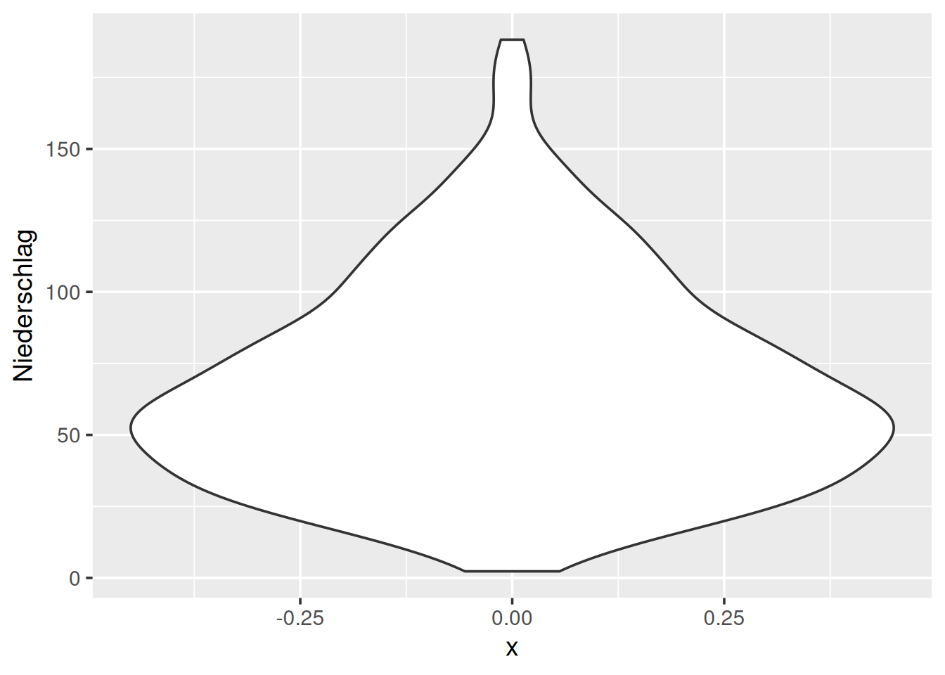 geom_violin(mapping = aes(x = 0, y = Niederschlag))