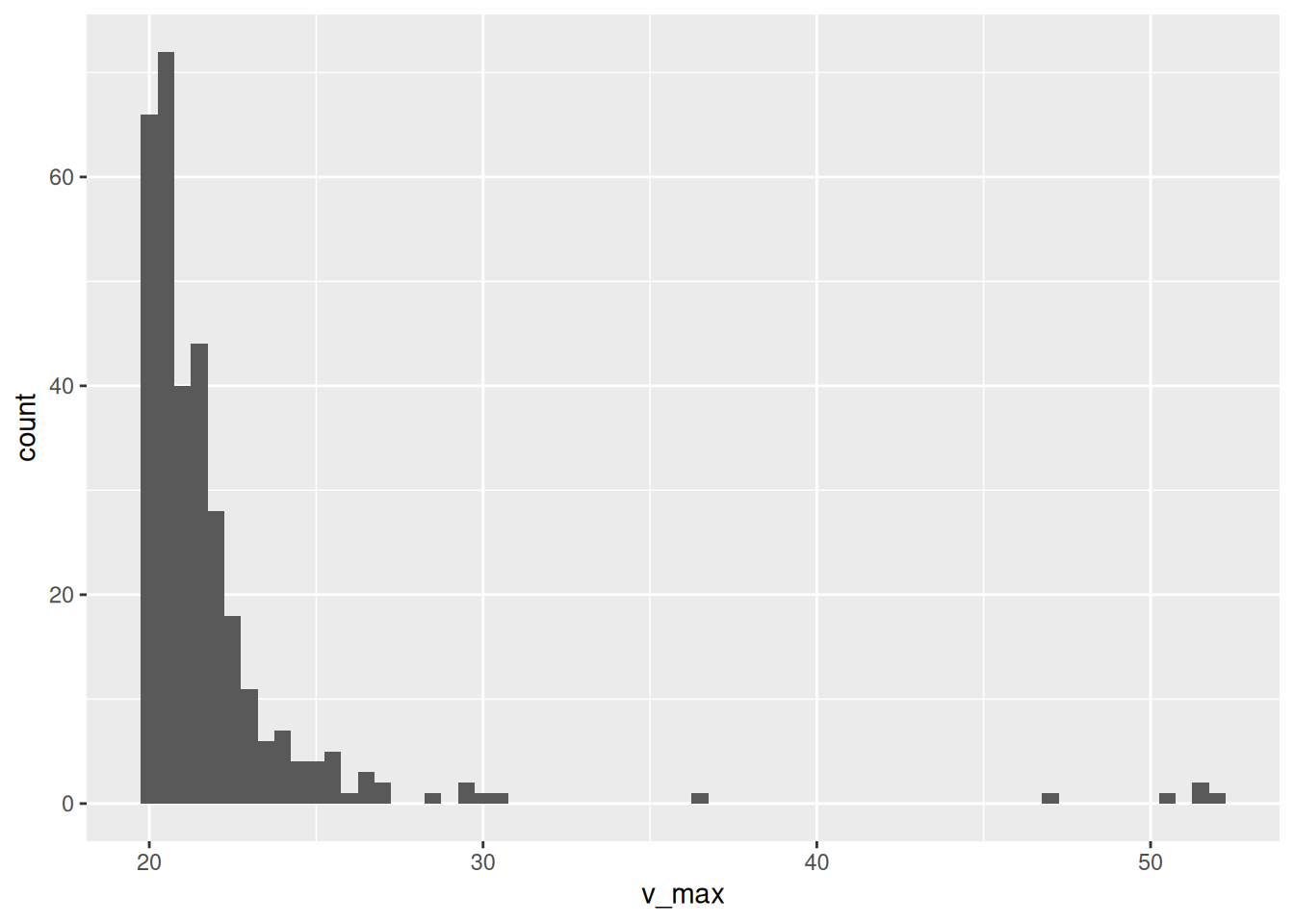 geom_histogram(mapping = aes(x = v_max), binwidth = 0.5)